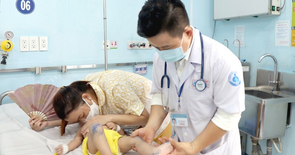 Một trường hợp trẻ mắc tay chân miệng được bác sĩ chăm sóc - Ảnh: Xuân Mai