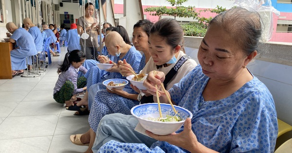 Bệnh nhân tại khoa ung bướu phụ khoa Bệnh viện Từ Dũ (TP.HCM) ăn suất ăn miễn phí - Ảnh: X.MAI